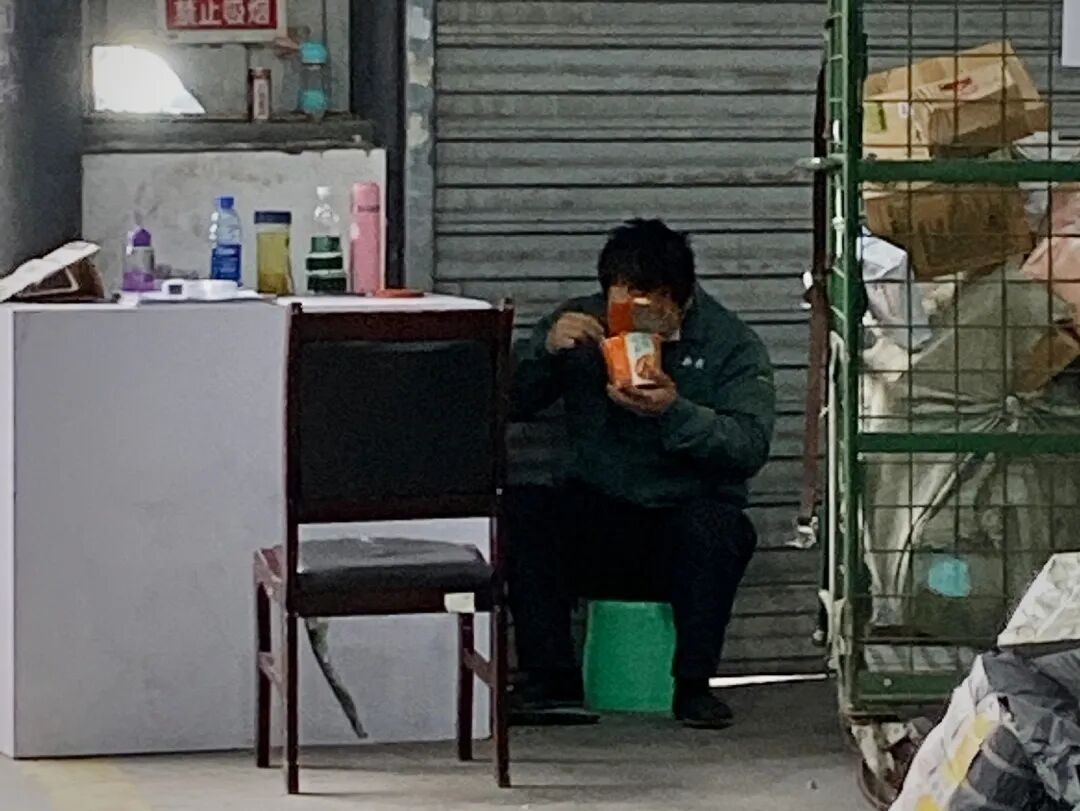为了不让取件的客户久等,午餐来不及吃上一口就已凉透,为了减少去卫生间的次数,大家就忍着口渴。虽然条件艰苦,但也没有人说过一句放弃。