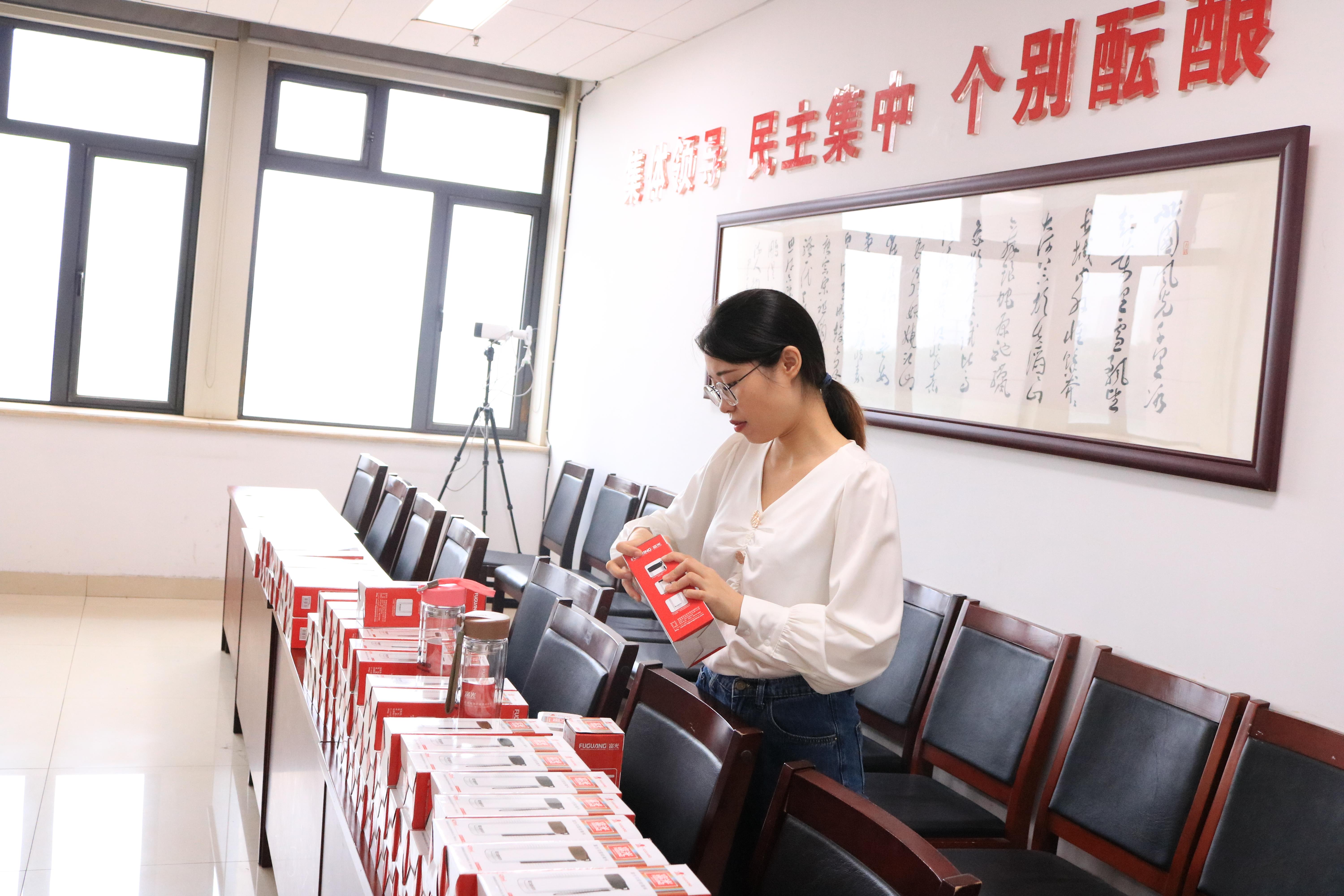 公司客服部人员为大家送上了节日慰问品,大家脸上都洋溢着喜悦。