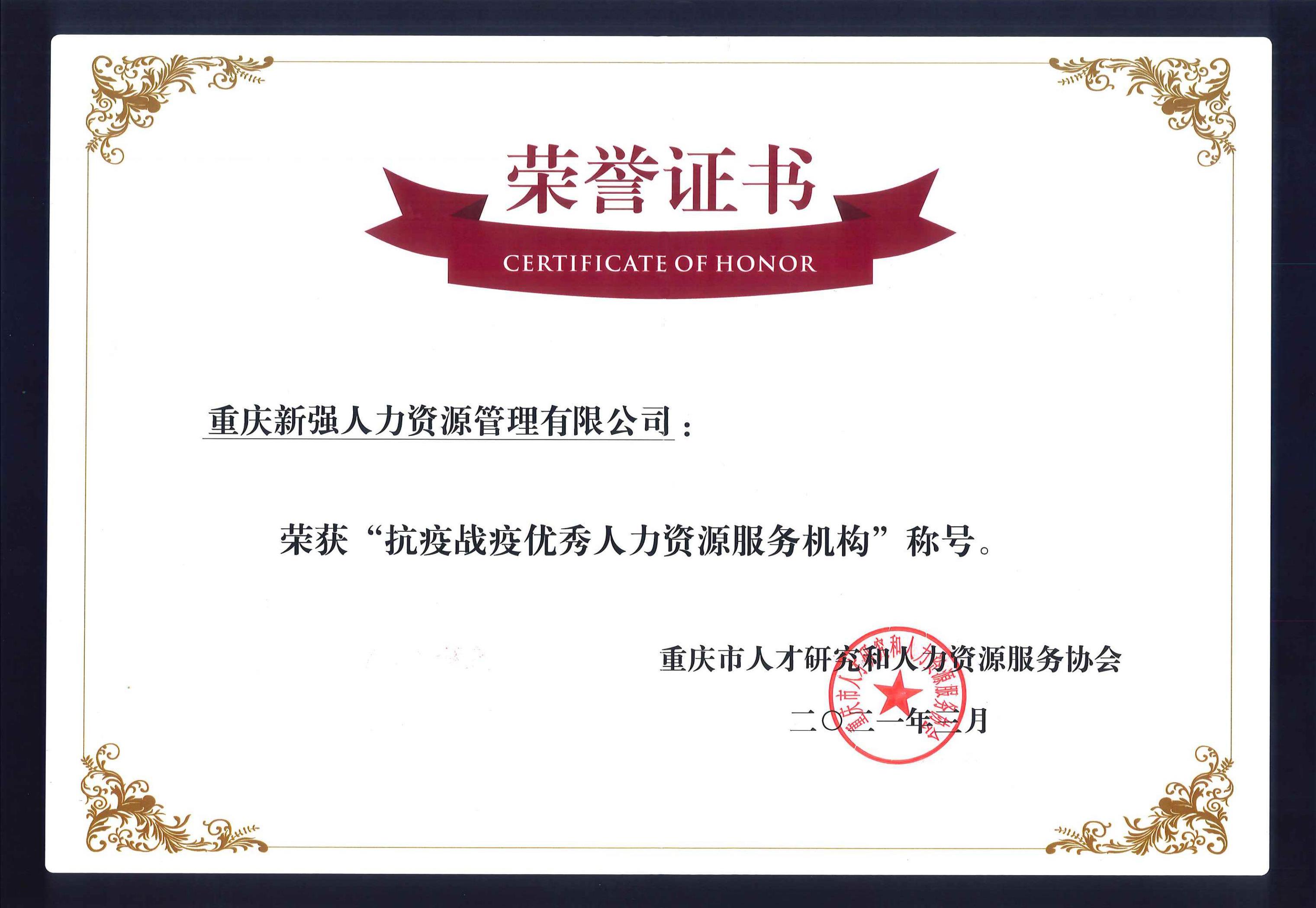 抗疫战疫优秀人力资源服务机构